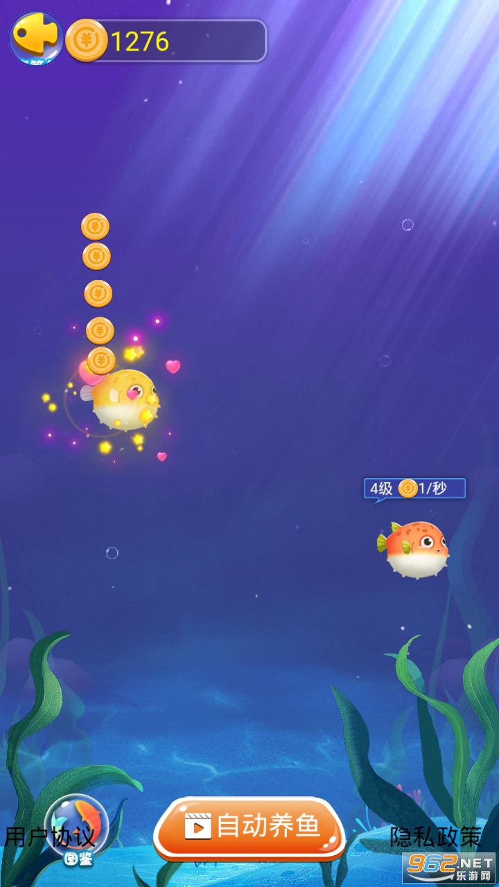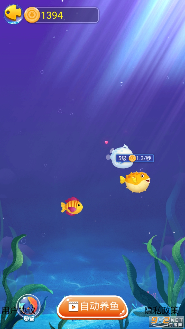 不同的鱼卖的钱不同,用户可以养很多种不同种类的鱼,到给自己丰厚的收益。