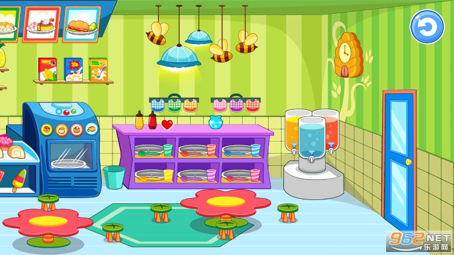 8个房间和游戏区域,例如时装店、大超市、一个糖果店和一辆食品货车;