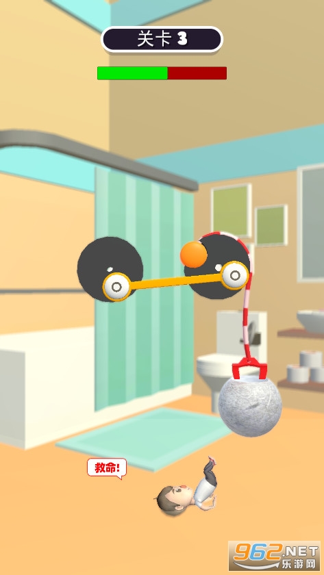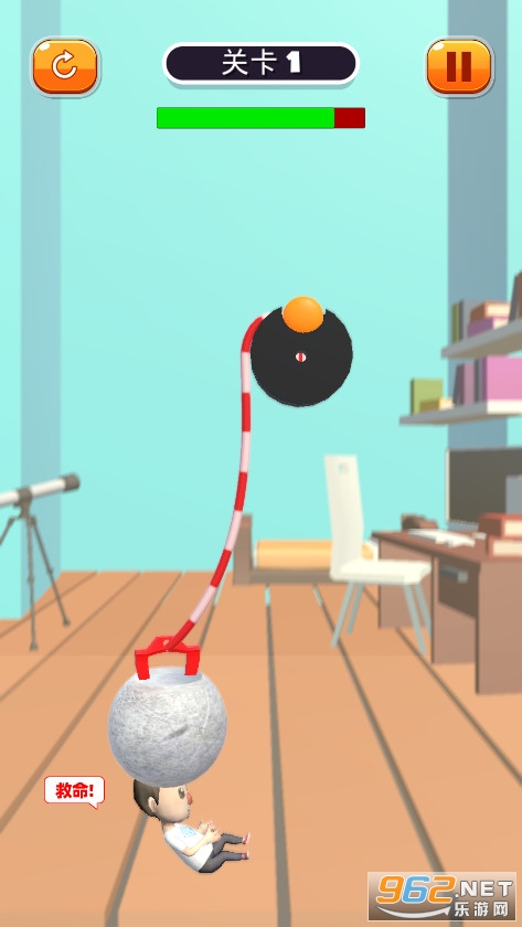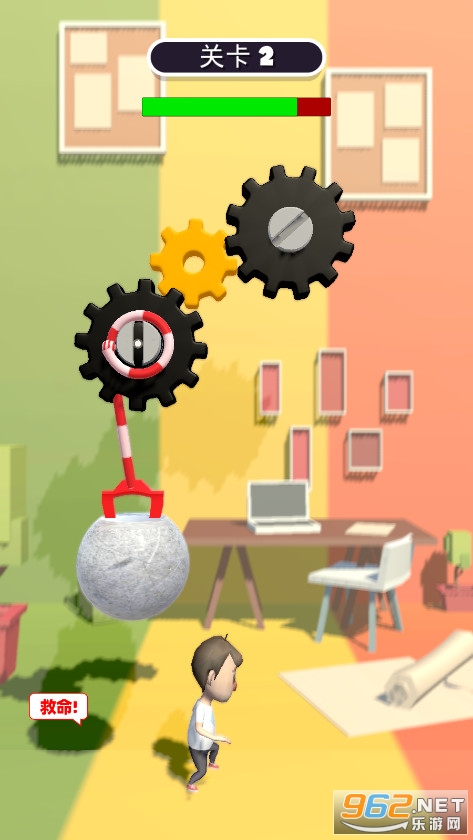 《滚石密室逃离安卓版》是一款绳子密室解救逃脱游戏,小男孩被巨石压住无法逃脱,但是巨石上拴着绳子,你要想办法利用房间里面的齿轮机关,利用滑轮的原理将巨石拉动,让小男孩可以顺利逃脱。