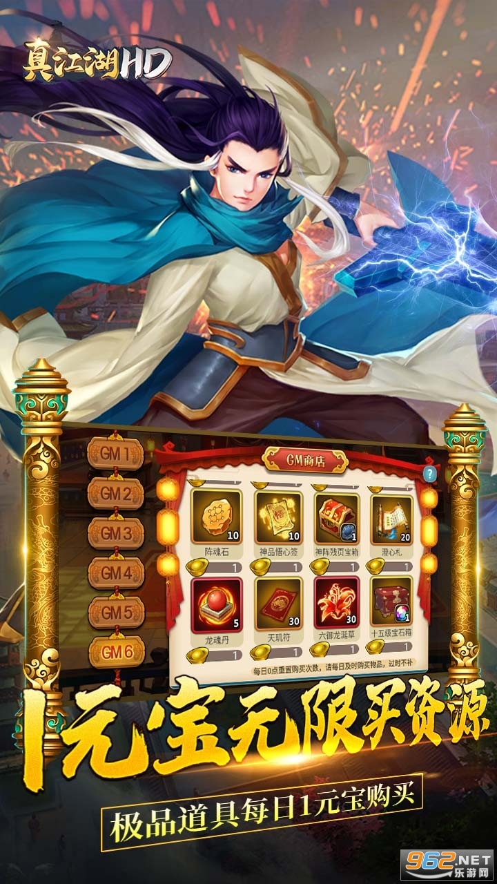 3、GM商城:极品道具每日购买,全场1元宝