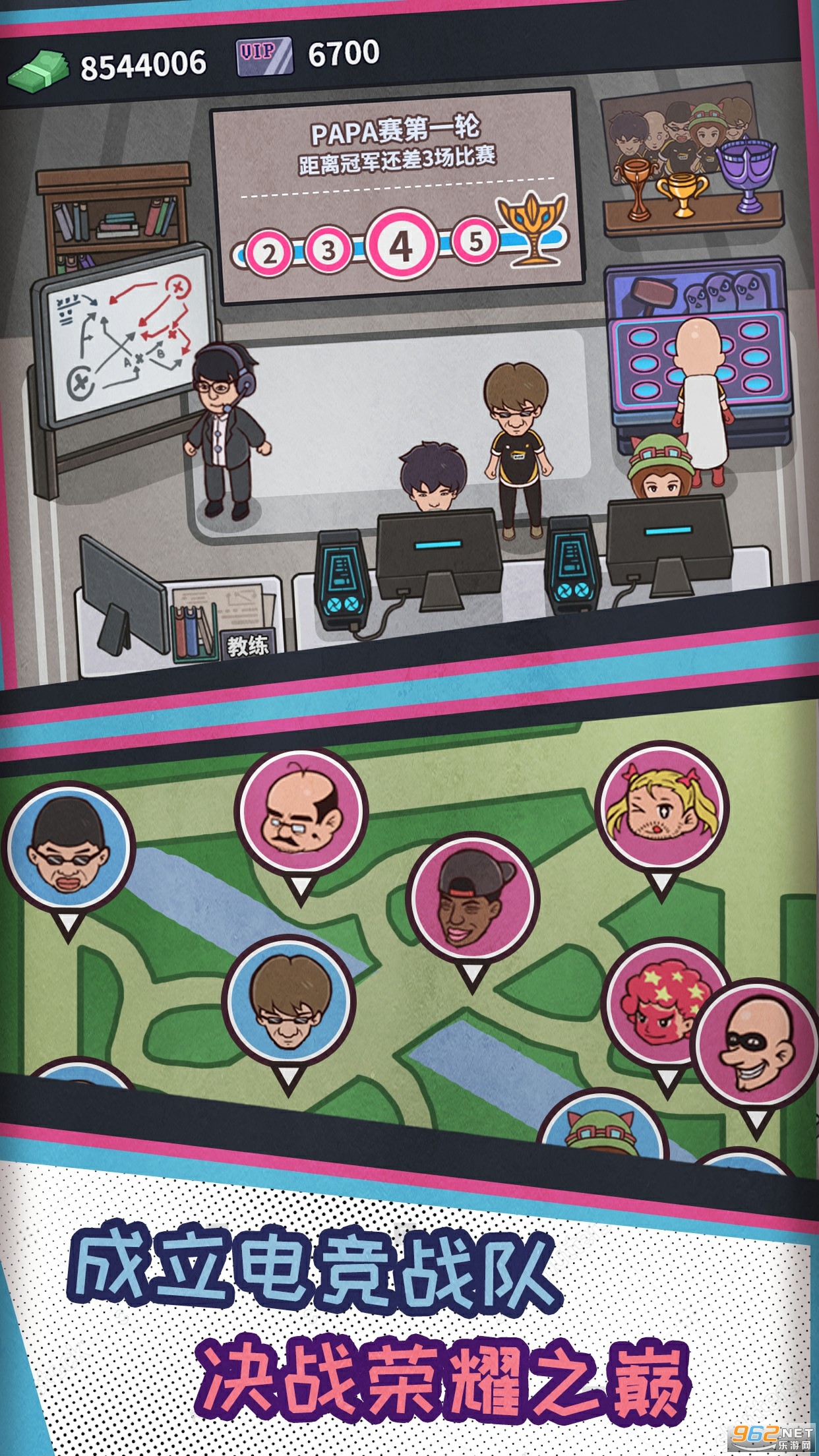跟随电竞浪潮的发展,成立自己的电竞战队,训练队员,参加赛事。追逐最高的荣耀。