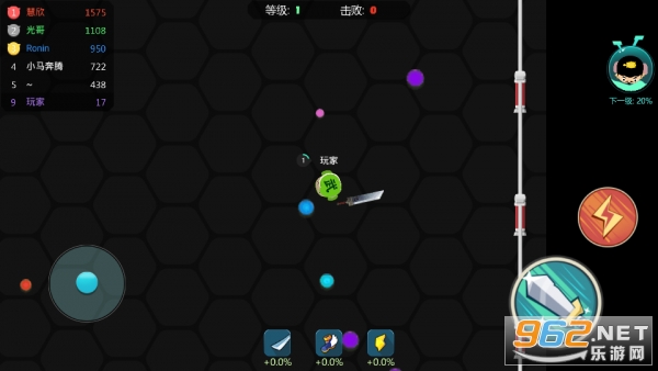 吃球:吃球成长,不停的走位,躲避对手的挥刀。
