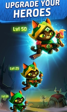 提升和升级–在游戏中前进时升级您的猫英雄,并创建该国最强大的猫军!