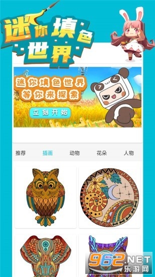迷你填色世界是一个充满梦幻色彩的世界,在这里尽情愉快吧!在迷你填色世界游戏中,你可以看到多种时下流行元素,我们会为您推荐一系列大家超爱的填色图片,您还可以在填色图片库中选择喜爱的元素,比如:人物、动物、花朵、插画等等,每个分类里面都有非常多的流行填色元素,让你在填色的同时,爱上它,并且得以解压。