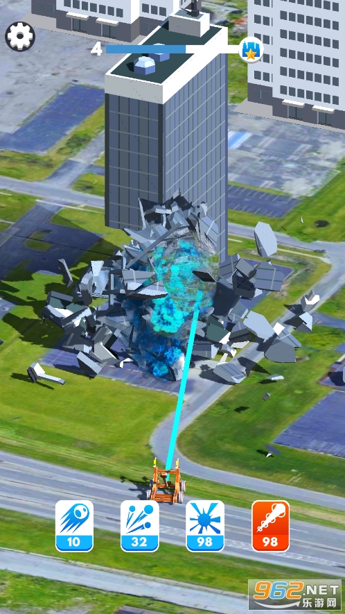 2、游戏的画风和玩法都非常的解压,提供各种各样的建筑,找准角度进行爆破;