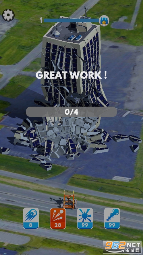 游戏的操作简单,玩法非常轻松,也相当的解压,拥有各种各样的关卡让大家挑战,让你可以在这里尽情的使用不同威力的炸弹,拆除大楼,在粉碎得过程中解压放松!