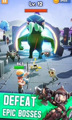 1.游戏采用崭新的卡通风格游戏画面,并具有多种关卡模式。拿起手中的弓箭杀死敌人。