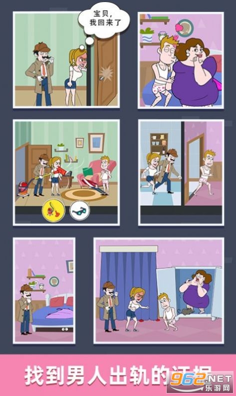 隔壁大侦探游戏是一款发现隔壁老王来做妖的侦探类游戏,可以说这是很多人都想知道的,隔壁老王总是鬼鬼祟祟的,而且还总是来自己的家旁边转悠,这让玩家起了疑心,于是需要雇佣侦探来发现老王的目的,而且妻子也是十分的怪异,这就更加让人疑心大起了。