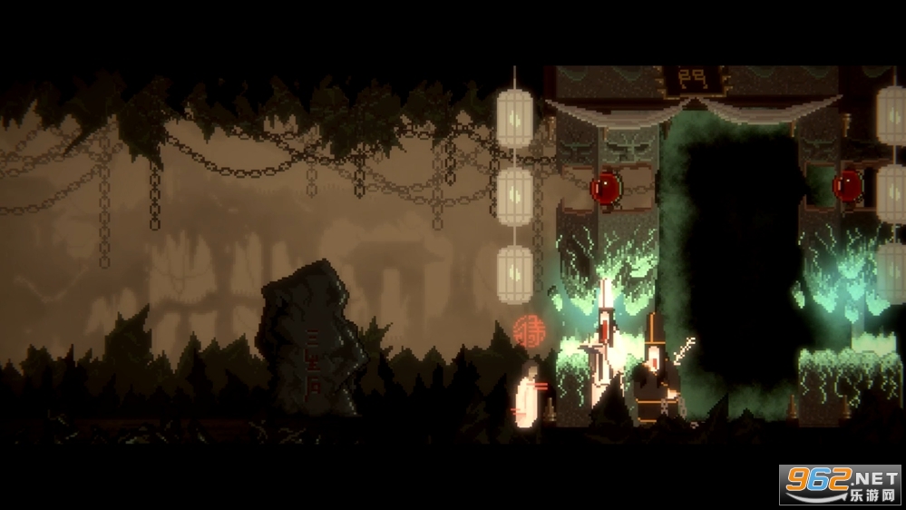 画面上游戏做过多种尝试,最终确定以像素画法来表现国画水墨的感觉,不同于以往大部分游戏的画面。