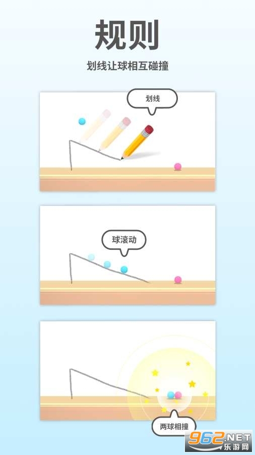 要想过关,只需要使蓝球和红球相撞。自由划线可以让球滚动,你的想象力是过关的关键。