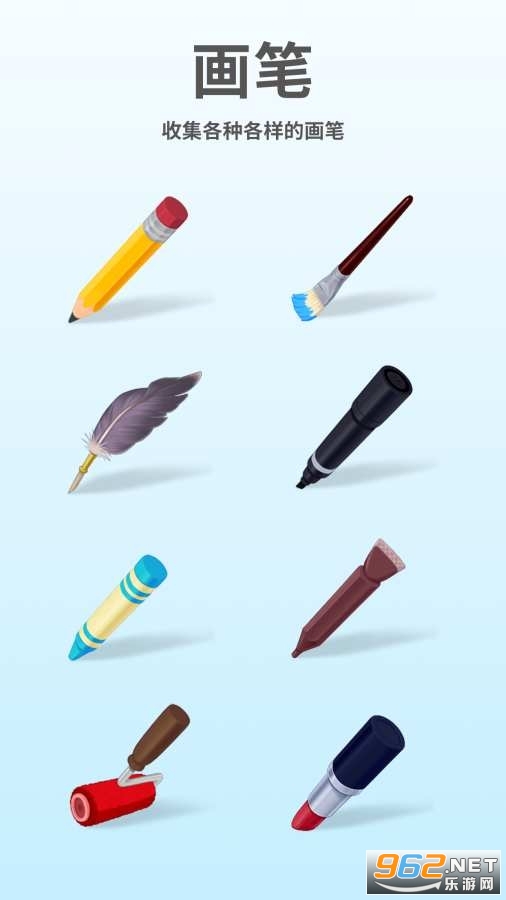 从铅笔到彩色铅笔,蜡笔等等,我们准备了各种颜色形状的画笔。收集各种画笔勇敢的闯关吧。
