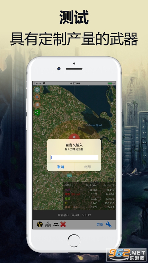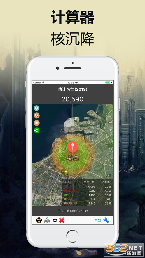 《核模拟器核辐射计算器》是一个免费的应用程序,用于根据Nuclear Explosion Archive研究的公式计算受核爆炸影响的区域。 该软件适用于希望了解更多核爆炸破坏性影响的用户,可能对疏散计划有用。