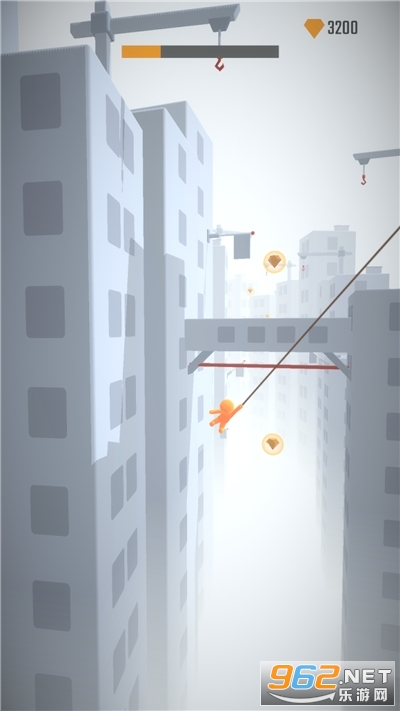 这游戏超级简约哦,在城市中,玩家控制小人儿,拿起一根绳子,就是荡。注意找准落点,只要绳子不断,就能一直前进哦,看谁能最快速度通过城市,就能闯关成功啦。