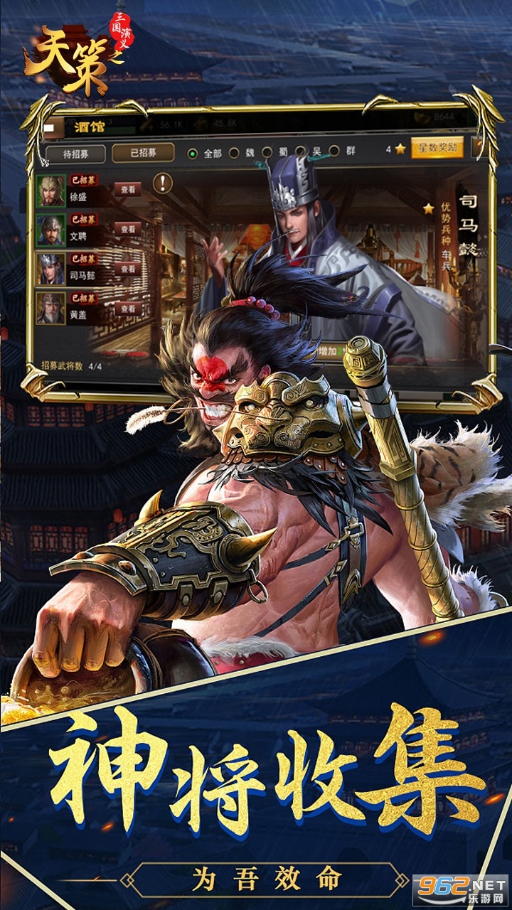 三国势力四方来袭,军团模式开启乱世时代,简单内政,外务。更多势力等待您的加入!勤于内政更可招募好的队友,不怕狗一样的对手,就怕猪一样的队友。