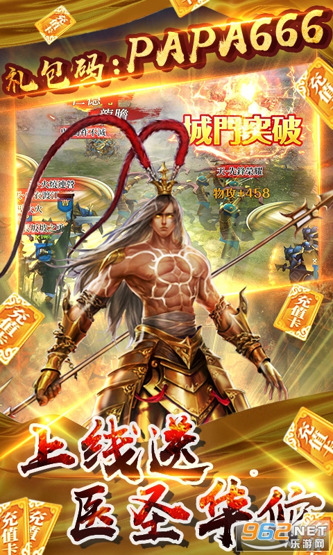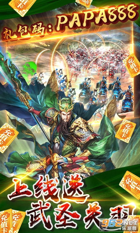 ★免费送VIP11,送328充值券(使用后直达V11)礼包码PAPA888 ,送武圣关羽, 礼包码PAPA666 送医圣华佗,铜币180000,钻石18888,