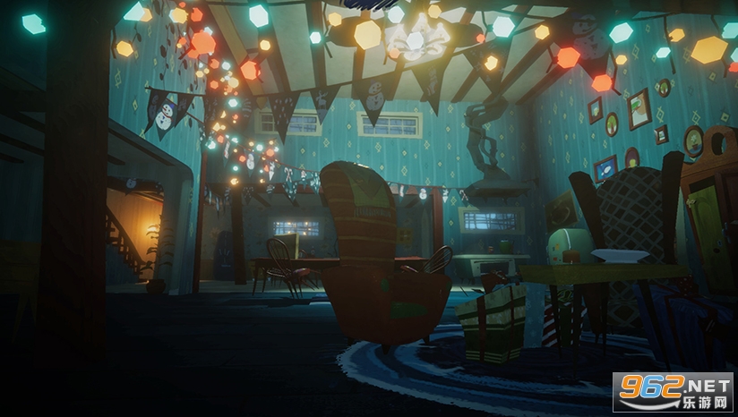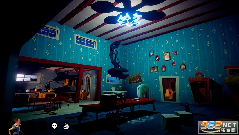 游戏有四名玩家,你们要在邻居的房间内找到各种线索和钥匙,最终打开地下室的大门就算是获胜了。问题是,四个孩子中,有一个孩子是邻居高大壮假扮的,邻居搞定所有熊孩子之后就算获胜,因此这是一个一对多的对抗游戏。
