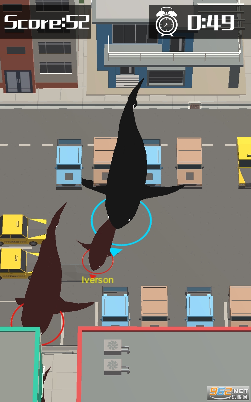 3、长按加速键,用巧妙的走位让鲨鱼被别人撞上,就可以吃掉他们啦。