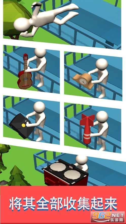 游戏中玩家可以站在一个升降梯上,多不同的高度破坏各种物品,