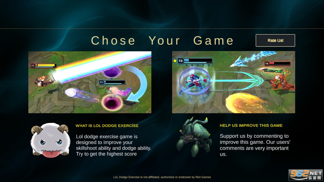 以lol为核心的一款锻炼玩家的走位的休闲游戏,能够让玩家练习躲避障碍的走位技巧,躲避各种技能,通过这种小游戏锻炼你的能力,变得更加敏捷吧!