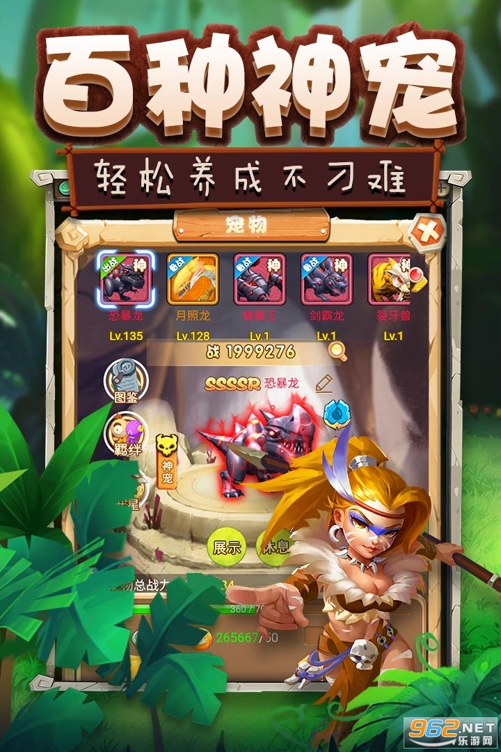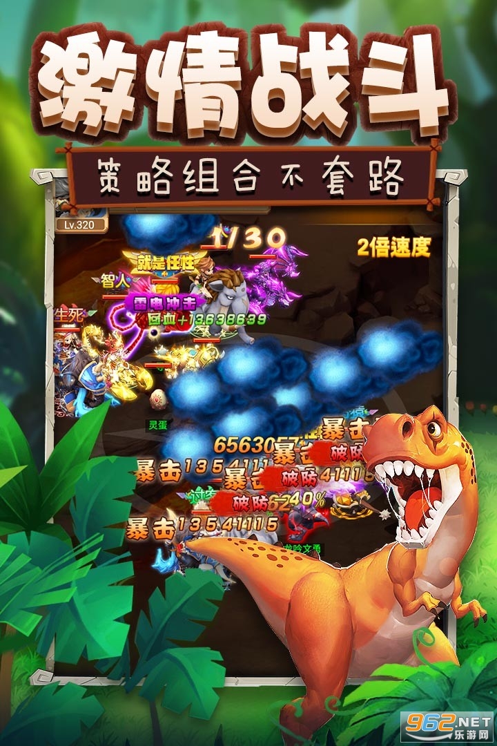 《疯狂恐龙》经典回合制再现,登录就送VIP5,开局秒十,连续登陆送红宠,神兽全靠捉!炫酷坐骑同游原始森林,超级萌宠自由养成,各种经典回合制玩法其乐无穷,还不快来?带您回归最纯正的原始人世界。