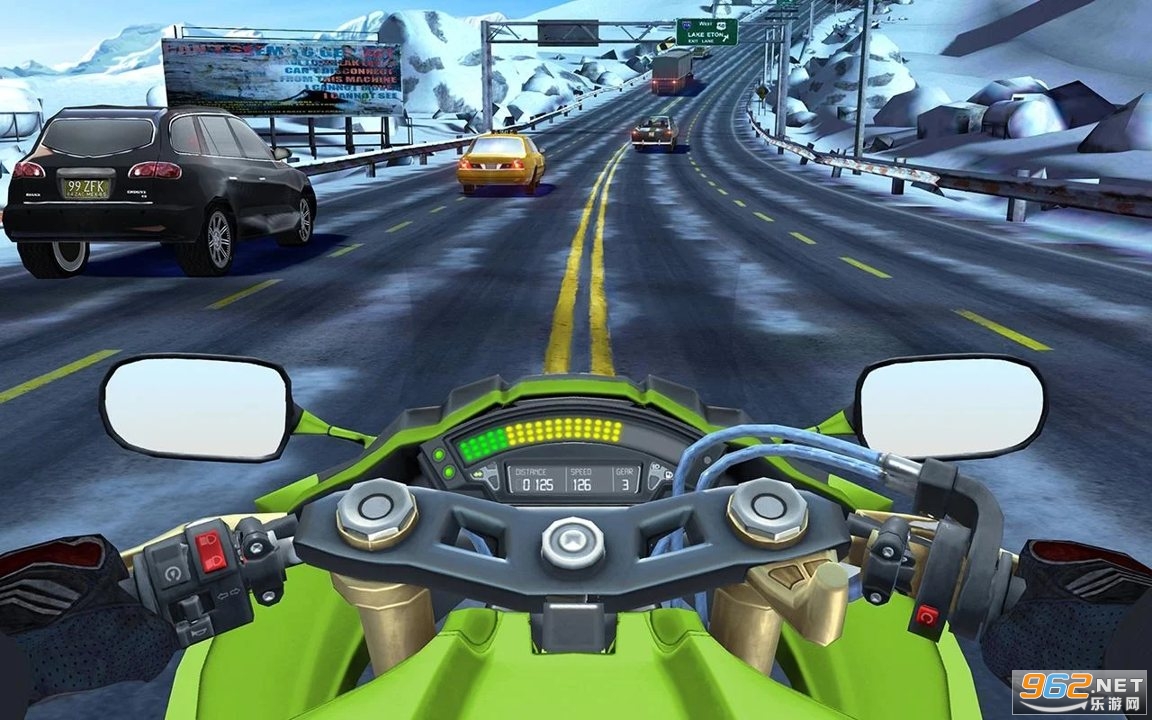 2.摩托骑士公路交通游戏中各种不同的场景还有背景地图都是使用的3D模拟环境技术;