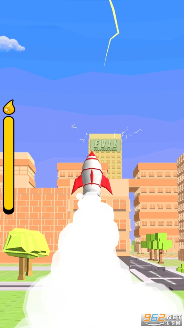 3、用您的手指引导火箭,摧毁惨淡的邪恶总部附近的建筑物,以拯救世界的使命混乱。