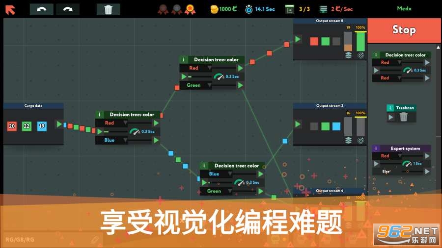 通过鼠标拖动游戏里的物体。又或者是吧其中的某些连在一起。尝试,失败,优化,再来一次。点击“发布”,然后享受平滑的数据流动带来的快感!