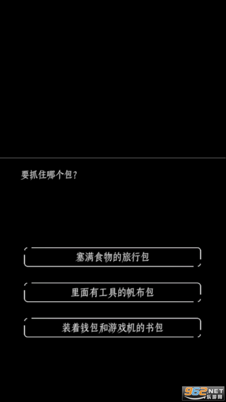 塞满食物的旅行包,里面有工具的帆布包,装着钱包和游戏机的书包。只能选择其中一样带到终结的世界。在这样的终极选择后,游戏正式开始。
