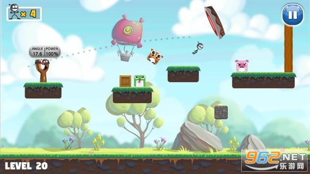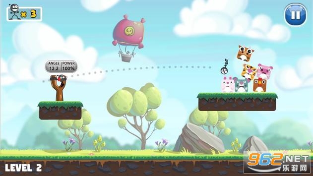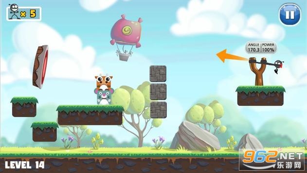 《击倒弹弓王牌》是一款有趣的弹弓射击游戏,游戏中玩家要将火柴人放到弹弓上去,调整射击的角度和力度去射击,让火柴人瞄准小动物们射击,将小动物们的堆叠高塔击倒,让小动物全部掉落你就获胜了,快来试试吧。