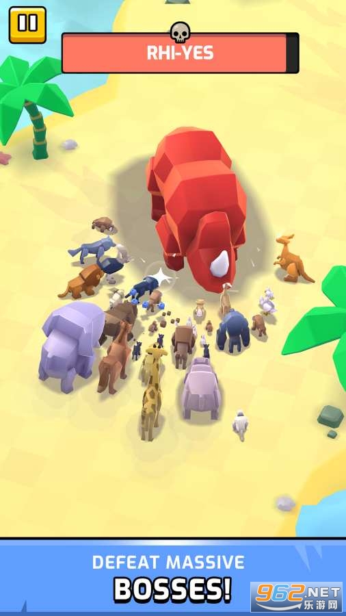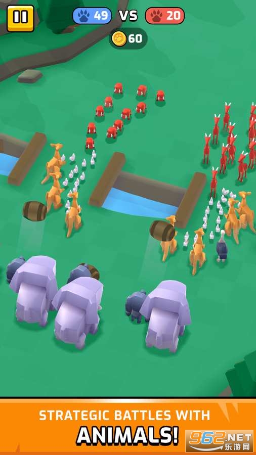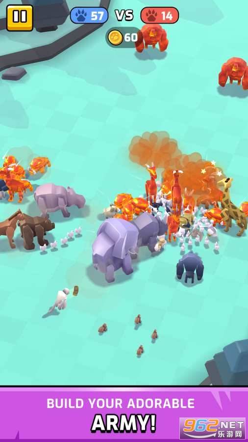 《动物战争 Animal Warfare》是一款低模风的策略模拟游戏。在这个有趣的基于物理的战术模拟器中,看着一群犀牛在小野猪身上横冲直撞,一只霸王龙抓着一只水牛的下巴,或者一头大象用它巨大的獠牙把一只老虎扔向空中!让你的想象力疯狂吧!