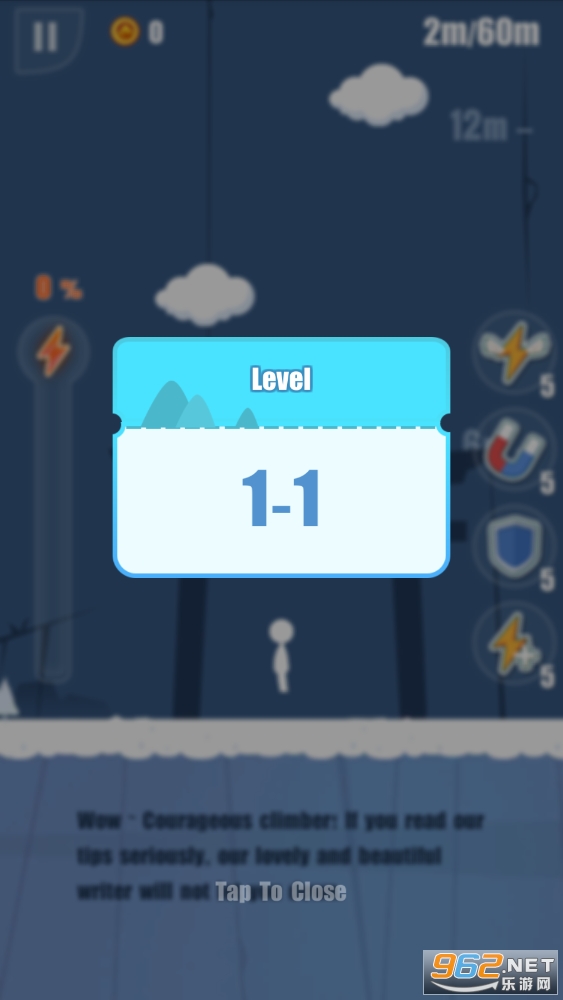 1.您只需要控制火柴人左右移动即可瞄准云层并爬到山顶。尝试尽可能高的攀登!