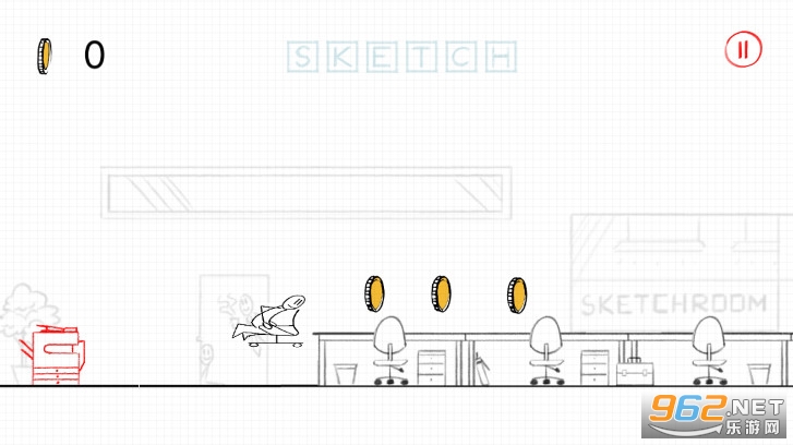 《素描滑行安卓版》是一款非常有趣的闯关游戏,游戏采用的黑白简笔画风格,画面简约有趣,像是看小人书一样,这个小人会出现在各种场合,雪山,办公室等等,让你的小人跳跃,或者是翻转,躲避红色的障碍,收集字母,当一个单词额字母收集完毕就可以过关了。