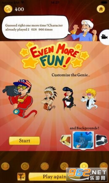 《akinometer网页版》是一款以阿拉丁神灯为主题的休闲测试游戏,玩法非常的火,大家可以在游戏开始在心中想一个人物,然后回答出游戏中给出的几个问题,就能够成功的让神灯猜出你心中所想,超级神奇,还没玩过的朋友赶紧来下载挑战吧!