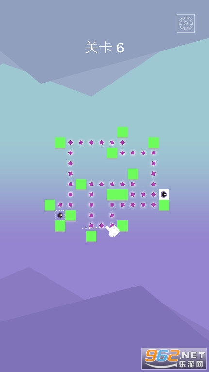 划动手指上下左右移动、变向,吃掉所有食物,在方块之间穿梭碰撞。