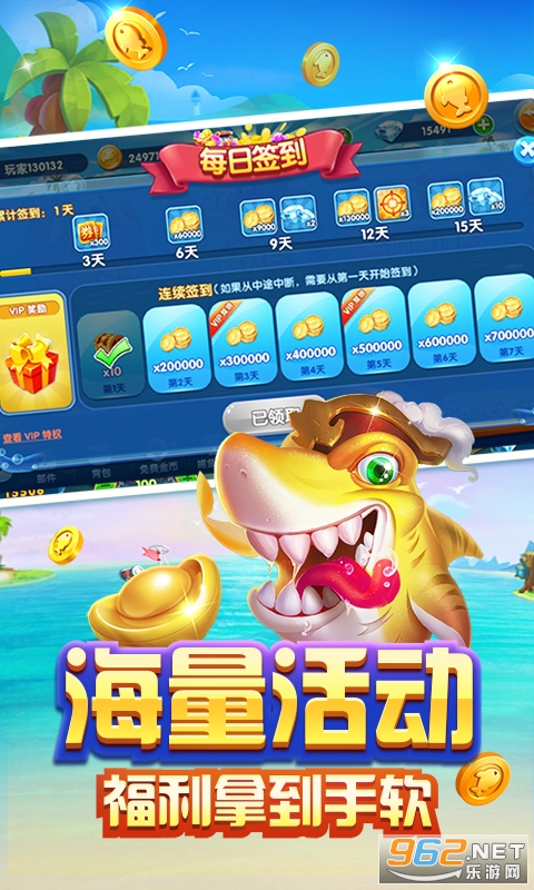 3.千炮、万炮更高倍率炮塔,更高命中率,街机打鱼模式,击中更多,炸得满屏金币,深海银龙王,各种大鱼boss,超级好打。