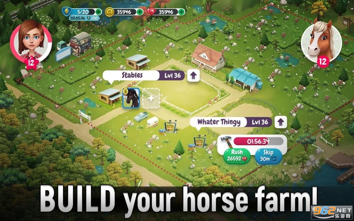 扩大农场,购买更多土地并建造漂亮的新设施,以增加更多马匹到您的团队中,并在每一种骑马技能上训练他们。