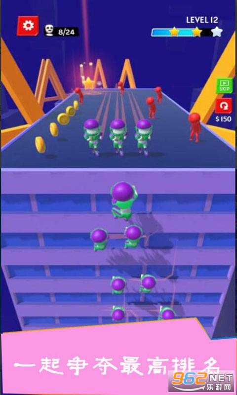 《欢乐奔跑》是一款清新卡通风格的休闲益智闯关游戏,玩家将化身为跑酷达人,和其他的对手进行一场欢乐有趣的跑酷竞速对决,游戏的操作简单容易上手,躲开各种各样的障碍和陷阱成为第一个到达终点的玩家。同时还有着各种各样的皮肤可以解锁,赶快下载体验吧!