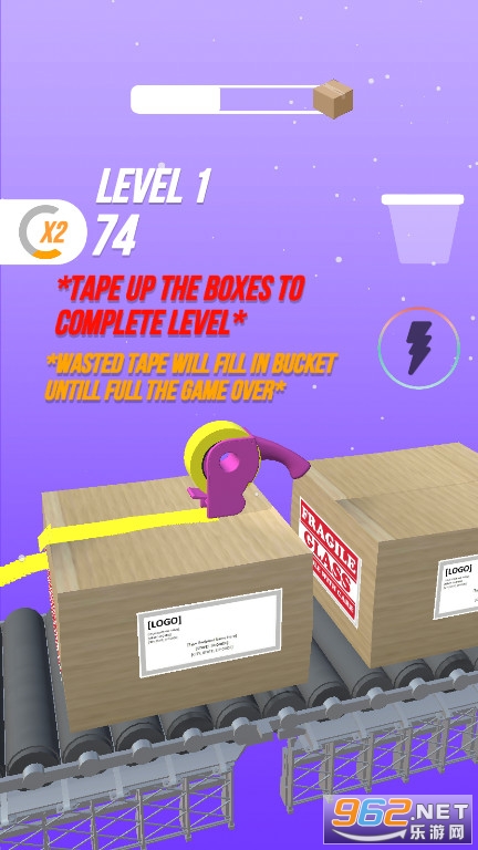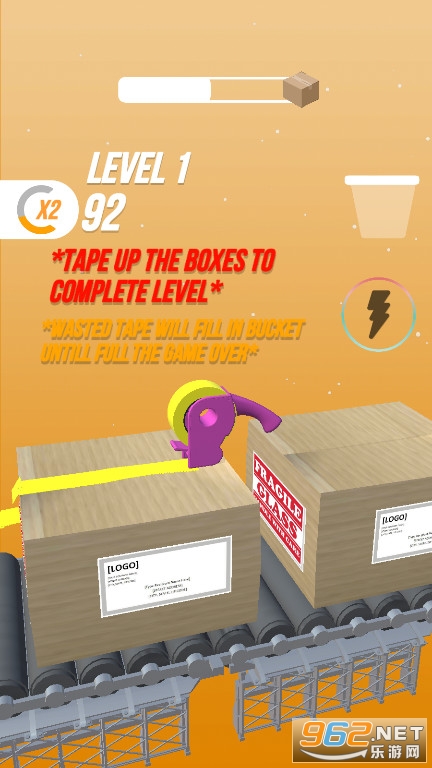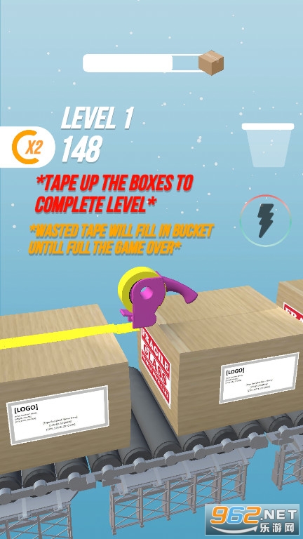 1:清新卡通画风的场景,轻松愉快的关卡挑战,游戏挑战没有时间限制,尽情的在游玩,体验作为快递盒包装员的工作。