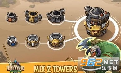 国防之王战场前沿是一种特殊的塔式防御游戏。炮塔的组合提高了球员的战术。在这个游戏中,玩家可以将炮塔堆叠在一起,为关卡创建最佳策略。