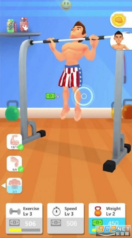 《健身拳击了解一下中文版》是一款卡通风格的健身模拟游戏,游戏中玩家要把自己给练成肌肉猛男,到健身房去使用各种健身器材,跑步,举铁,引体向上,压腿,各种运动方式都去尝试,只有金币足够才能解锁器材和动作。