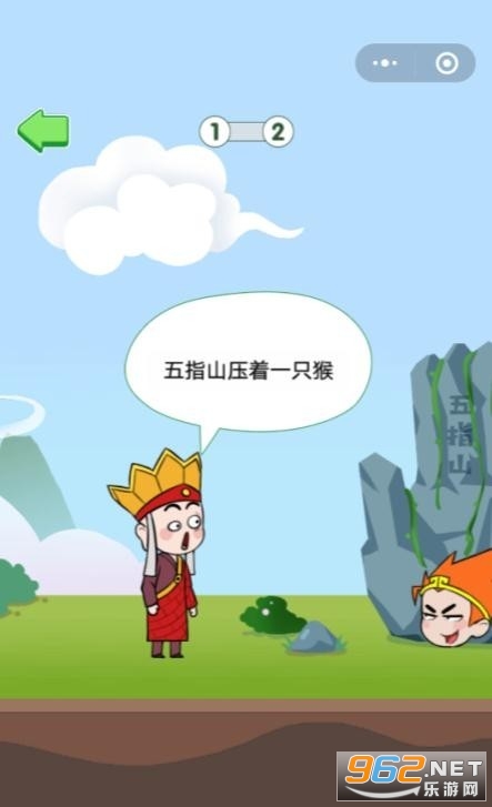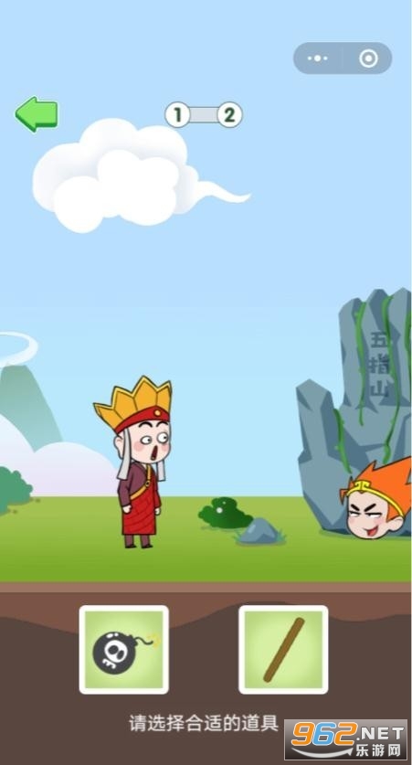 2、第一关路上遇到猴子,被压在五指山下的猴子怎么救,选择合适的道具,不要轻易丢炸弹哦。