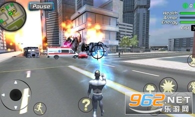 2、玩家有很多超能力,可以用手射击光束,也可以爬上城市中的任何建筑物;