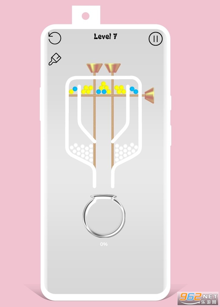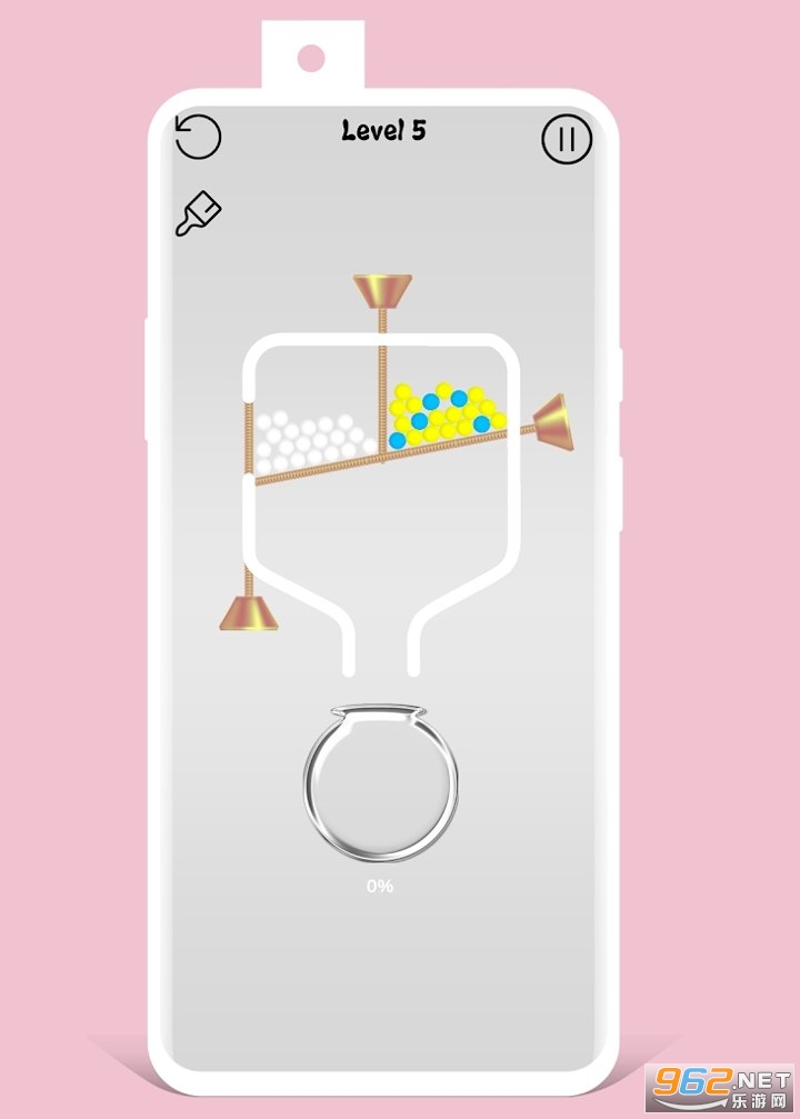 1、在游戏关卡中,重力将球拉向通道。此时,无论何时,销都伸出。