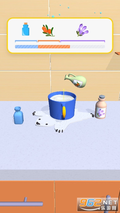 1、卡通的简洁游戏画风,复杂的步骤真实的模拟肥皂的制作。