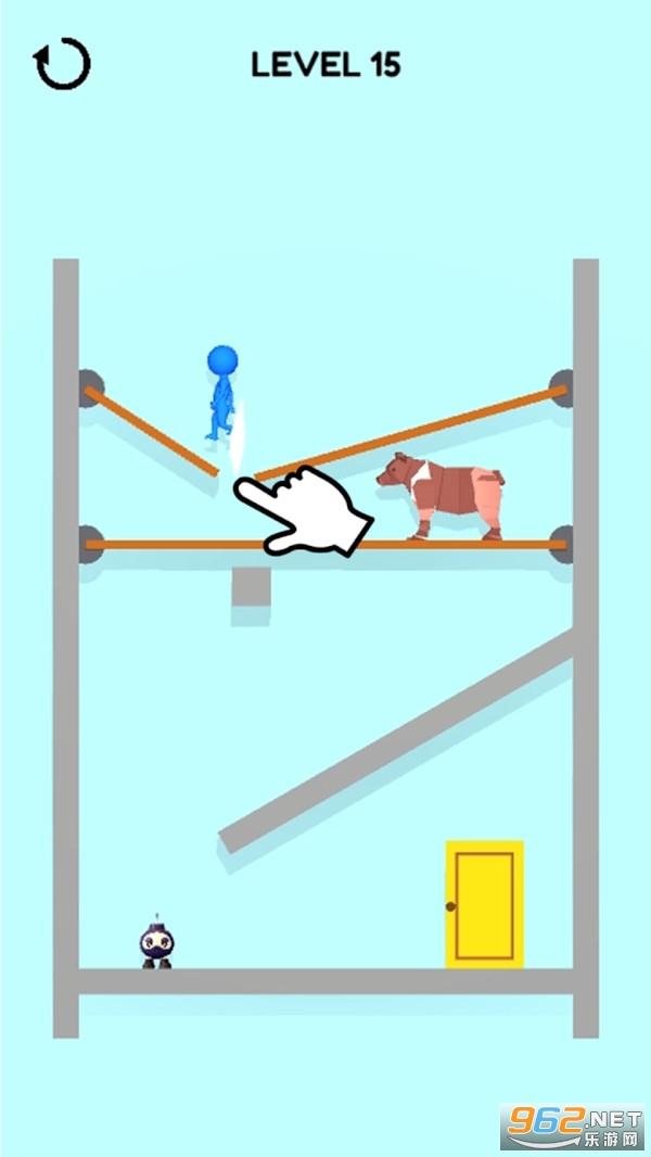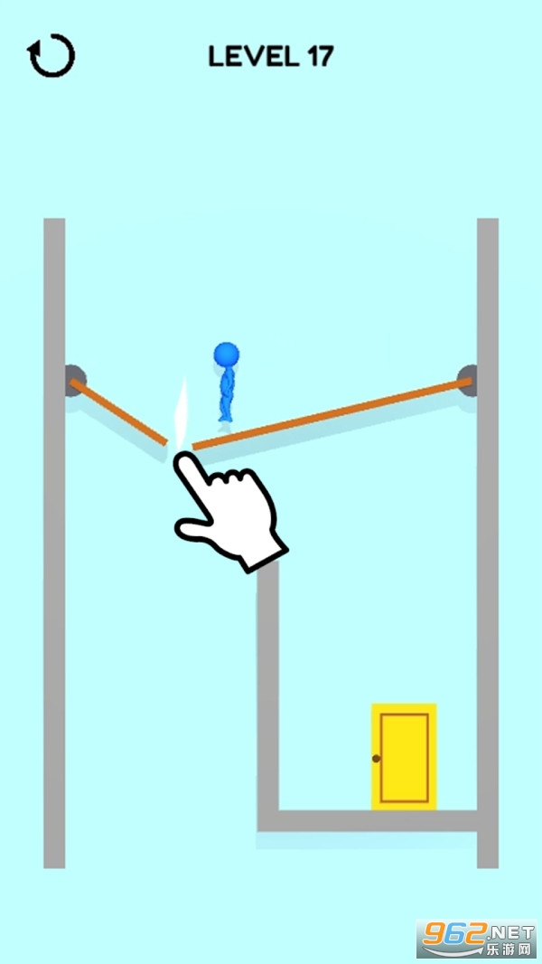 这是一个益智游戏。 请切开薄板,让蓝色小人到达门口。