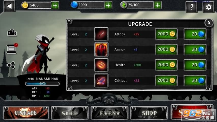 经典火柴人的暗影战场,操作你强大的暗影战士去和BOSS战斗,自由技能连击带给你爽快的体验;