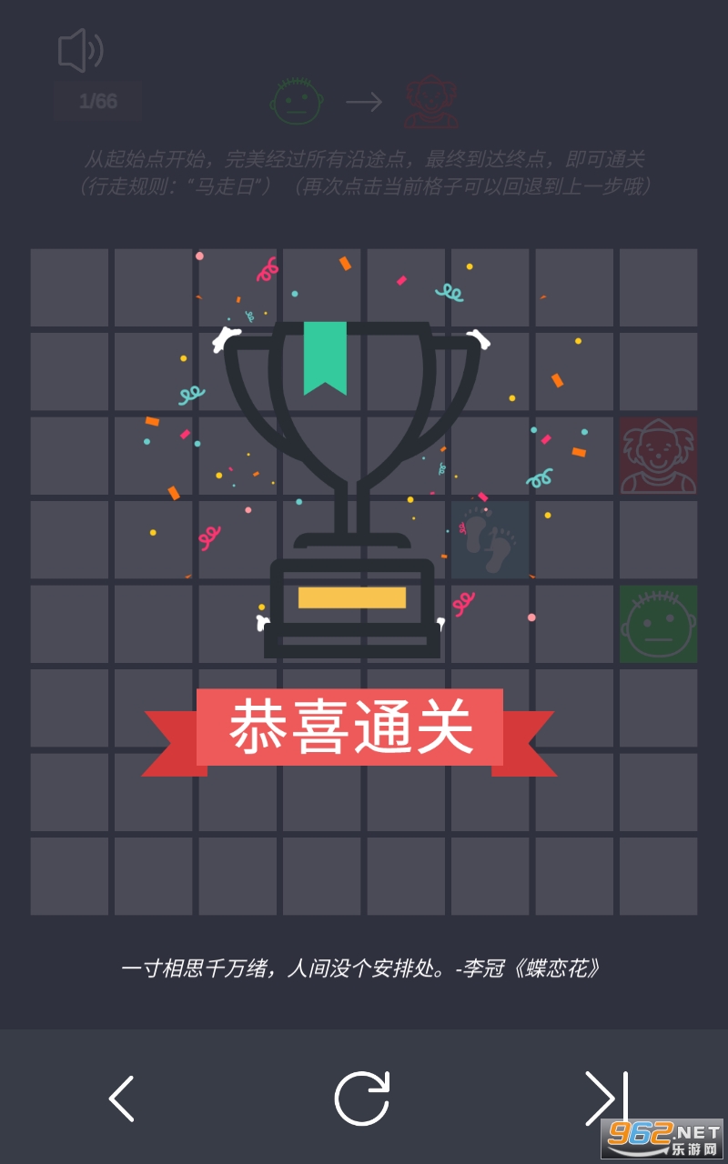总体来说是一款非常不错的益智闯关解谜游戏,简约的游戏线条,轻松的手指点击操作玩法,通过马走日的方式去进行移动让你的任务能到达关卡的最终出口,是非常需要玩家们的逻辑思维的哦,喜欢的亲们赶紧下载吧。