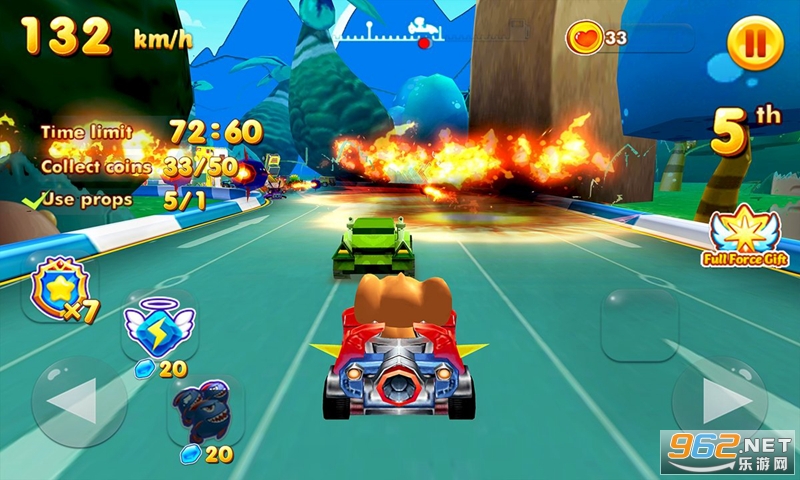 操作杰瑞去打败汤姆,利用各种炫酷的赛车技巧去超越汤姆,还有超多好玩的道具让这场赛车更有意思。