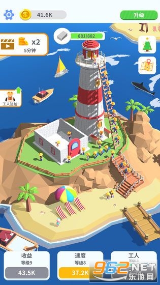 3、各种不同的建筑,越豪华赚的钱就越多,持续的升级工人们这样就能提高效率。