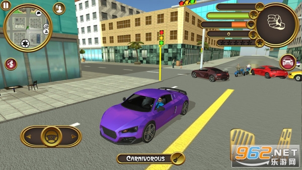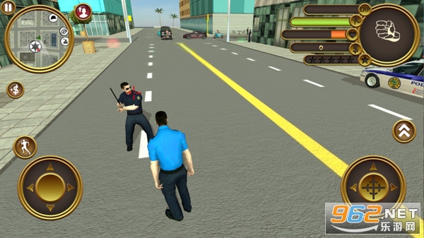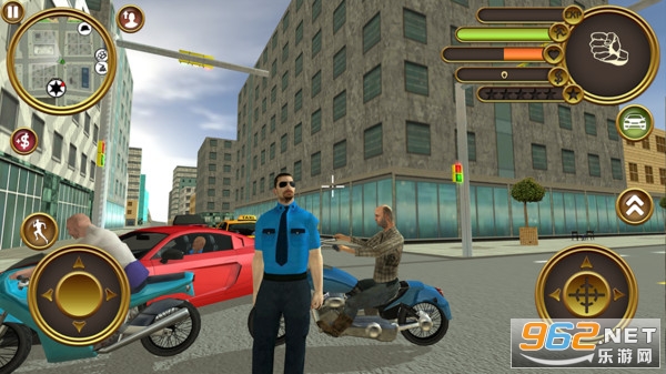 一款城市犯罪题材的3D模拟类游戏,游戏画面简单,你将扮演重新上位的强人,你可以自由自在的在城市中穿行,可以偷窃别人的车,去执行各种任务,在路上你要躲避警察的追捕,不管是自行车、摩托车还是汽车都可以自由驾驶,灵活控制角色的行走方向,拿着各种武器装备,还可以瞄准建筑物开火并摧毁。